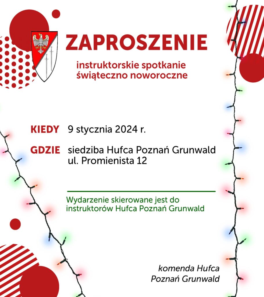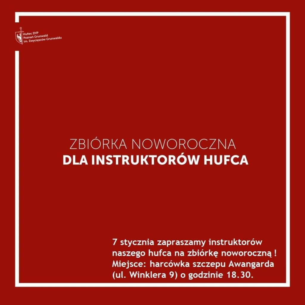 W najbliższą niedzielę tj. 10.12.2023r. godzina 17:00 odbędzie się zjazd zwykły Hufca Poznań-Grunwald w klubie Krąg – Poznań ul. Dmowskiego 37.